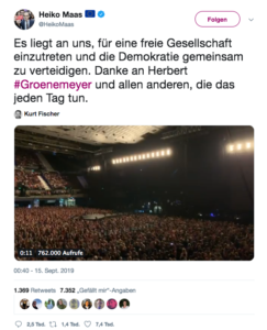 Spannend fand ich auch diesen Zeit Artikel: https://www.zeit.de/gesellschaft/zeitgeschehen/2019-09/heiko-maas-aufruf-gegen-rechts-herbert-groenemeyer-konzert-spd