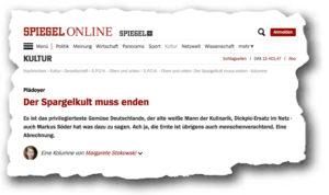 Ironie ist in dem Text nicht aufzuspüren, noch nicht mal gekonnte. Auch in den anderen Texten Stokowskis nicht. Aber überhaupt: welche anderen Stokowski-Texte? Variations- beziehungsweise vielfaltstechnisch ist die Preisträgerin ja eher der Dieter Bohlen unter den preisgezeichneten guten deutschen Publizisten. Da war Claas Relotius einfallsreicher.