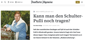 Die vorerst letzte Auffächerung von ‚Sylt – er ist wieder dö‘ veröffentlichte die Zeitung für Deutschland mit einer Betrachtung zum übergelegten Pullover, für den es jetzt auch keine Unschuldsvermutung mehr gibt.