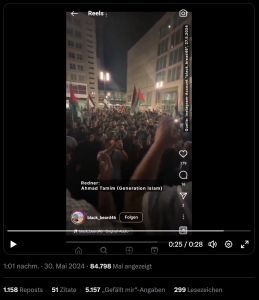 Der Betrachter sollte sich bitte nicht von der Szenerie täuschen lassen, es handelt sich nicht um ein Video aus Ramallah oder Sanaa, sondern es spielt auf dem Alexanderplatz in Berlinistan. Was der Redner Ahmad Tamim von der „Generation Islam“ dort vortrug, lässt sich durchaus als konkrete Vernichtungsdrohung gegen alle verstehen, die sich auf die Seite Israels stellen (was Stürzenberger und seine Bewegung seit Jahren tut). In Mannheim könnten also tatsächlich aus diesen Worten Taten geworden sein. Die Bilder dieser Kundgebung fanden natürlich nicht ihren Weg in die Nachrichten von ARD und ZDF, sie führten nicht zu einem Stern-Titel und zu keinem Satz des besorgten Bundespräsidenten. Und sie erschienen, wie schon erwähnt, bisher in keinem der Mannheim-Berichte. Anders als bei der Sylt-Erschütterung herrscht einfach kein allgemeiner gesellschaftlicher Zustandsalarm in den Redaktionen. Und ohne diese Warnstufe leuchtet nun einmal kein Medienschaffender mit funktionierenden Instinkten allzu tief in den Raum.