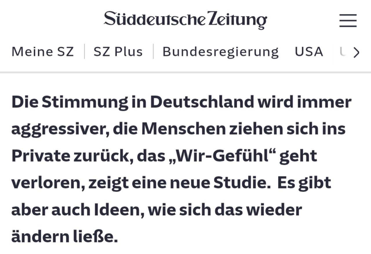 Dieser Tage ging die Klagemeldung über den schlechten Zustand des Wir-Gefühls durch mehrere Medien.