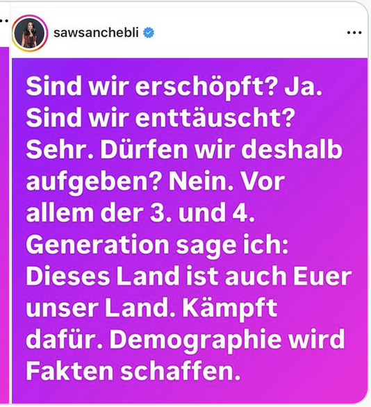 Das tut sie jetzt schon, mit etwas politischer Nachhilfe. Durch das Einbürgerungsgesetz der Ampel erhielten allein 2024 bundesweit 291 000 Migranten die deutsche Staatsbürgerschaft, fast 100 000 mehr als 2023. Dazu kommen noch jedes Jahr mehr als 20 000 Asylanträge für in Deutschland geborene Kinder von Asylantragstellern. Schon in wenigen Jahren verschieben sich dadurch in Ballungsgebieten die Wählermehrheiten drastisch. In einem Interview mit dem Redaktionsnetzwerk Deutschland (RND) meinte Reichinnek kürzlich: „Es bringt nichts, wenn die Grünen und wir uns 5 Prozent Wählerstimmen hin- und herschieben.“ Auch mit dieser Analyse liegt sie richtig. Mit den Islam-ist-Chef-Wählern endet der ewige Stimmenaustausch im Linkslager. Stattdessen gibt es eine echte Ausweitung der Kampf- und Gewinnzone. Daran denkt eine Lamya Kaddor, daran dachte auch die Chefin der Grünen Jugend Jette Nietzard, als sie in einem Video das Massaker der Hamas am 7. Oktober 2023 als „Militäroperation“ bezeichnete. Zwar nahm sie ihre Bemerkung nach Protesten jüdischer Organisationen zurück. Das gesendete Signal kommt trotzdem an.