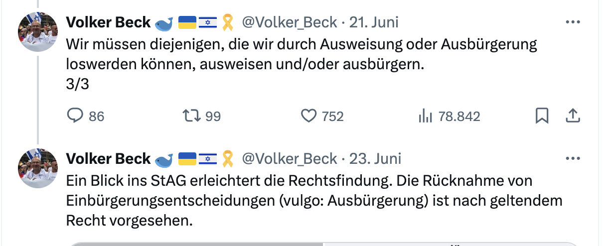 Volker Beck erwischte es gleich ein zweites Mal. Nach dem großen Aufzug der Israelfeinde und Freunde des politischen Islam in Berlin, bei der auch strafbare Symbole gezeigt wurden – beispielsweise eine Fahne des IS –, erklärte Beck, er halte es für nötig, Antisemiten abzuschieben, wo immer es juristisch ginge.