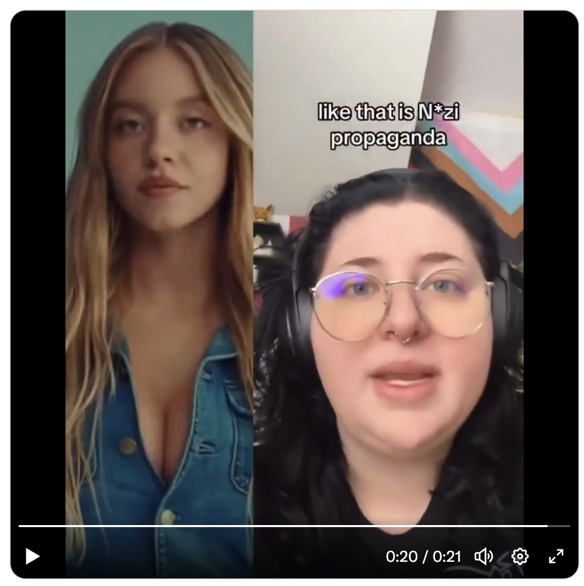 Es folgt jetzt ein kleiner Ausschnitt aus Wortmeldungen in der Sache, wobei der Einfachheit halber ein Prototyp für den generischen Rest steht, zu dem die Links in den folgenden Absätzen führen. Die Jeans-Kampagne von American Eagle, erklärte beispielsweise eine dezidiert nicht sweeneyhafte Influencerin, werbe für Eugenik, sei „Nazi Propaganda“ und gehöre mit allen Mitteln bekämpft.