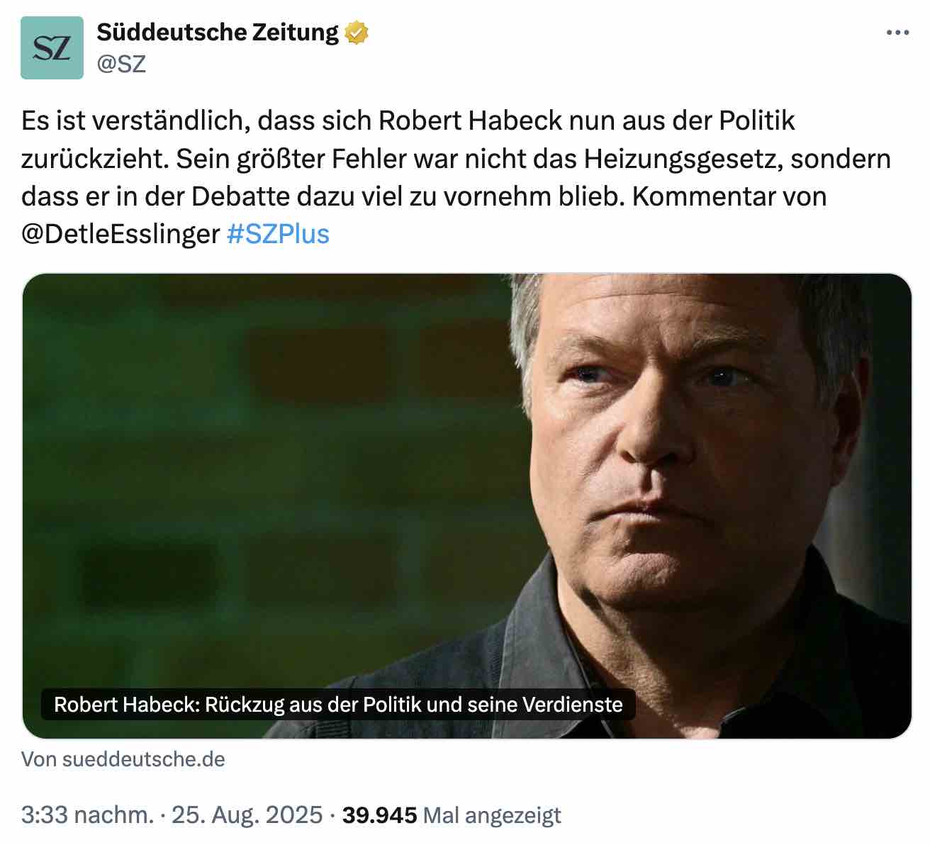 03.09.2025@ZornDieter Trotzdem mal verschicken. Weißt du’s, wer nicht selbst die Dinge hinterfragt? Und wenn nicht, dann kann es sich lohnen auch mal die Komfortzone der anderen zu stören, auf das sie wissen mögen, dass die Fühlis allein noch keine Argumente sind.