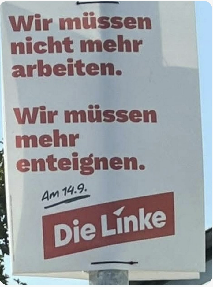 Die erste Antwort lautet: Mitte-links ist heute ein erheblicher Teil der CDU; in dem Artikel geht es aber um andere Parteien, nämlich die, die alles, was „Mitte“ und „bürgerlich“ heißt, mit Erbitterung bekämpfen. Damit ruinieren sie das Bürgertum ein bisschen, sich selbst aber sehr viel mehr. Denn den Wettbewerb um die härteste Besteuerungs- und Plünderforderung gewinnt immer die umgemodelte DDR-Staatspartei, und zwar mit sattem Vorsprung.