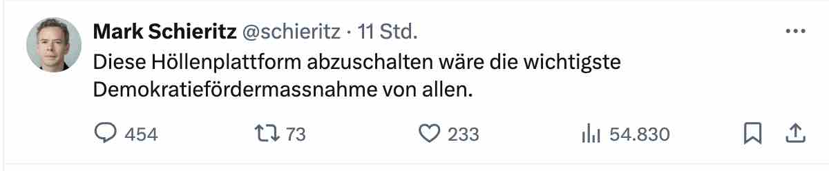 Im Iran und in Nordkorea wirkt diese Maßnahme schließlich auch. Es handelt sich, das nebenbei, um den gleichen Zeit-Schreiber, der auf X emsig sein Buch mit dem Titel „Zu dumm für die Demokratie? Wie wir die liberale Ordnung schützen, wenn der Volkswille gefährlich wird“ bewirbt. Kim Jong-un würde vermutlich wie dieser Hamburger Redakteur sagen, dass er die demokratische Mitte seines Landes verkörpert. Das alles – mehr Wahlmanipulation, Parteiverbot, mehr Meinungsbestrafung – liegt wie gesagt im Bereich des Möglichen. Der Krieg von oben gegen einige Millionen der eigenen Bürger in Zeiten des wirtschaftlichen Niedergangs erfordert allerdings eine dauerhafte Kraftanstrengung. Schon Charles-Maurice de Talleyrand-Périgord wusste, dass es sich auf Bajonetten nur sehr unbequem sitzt.