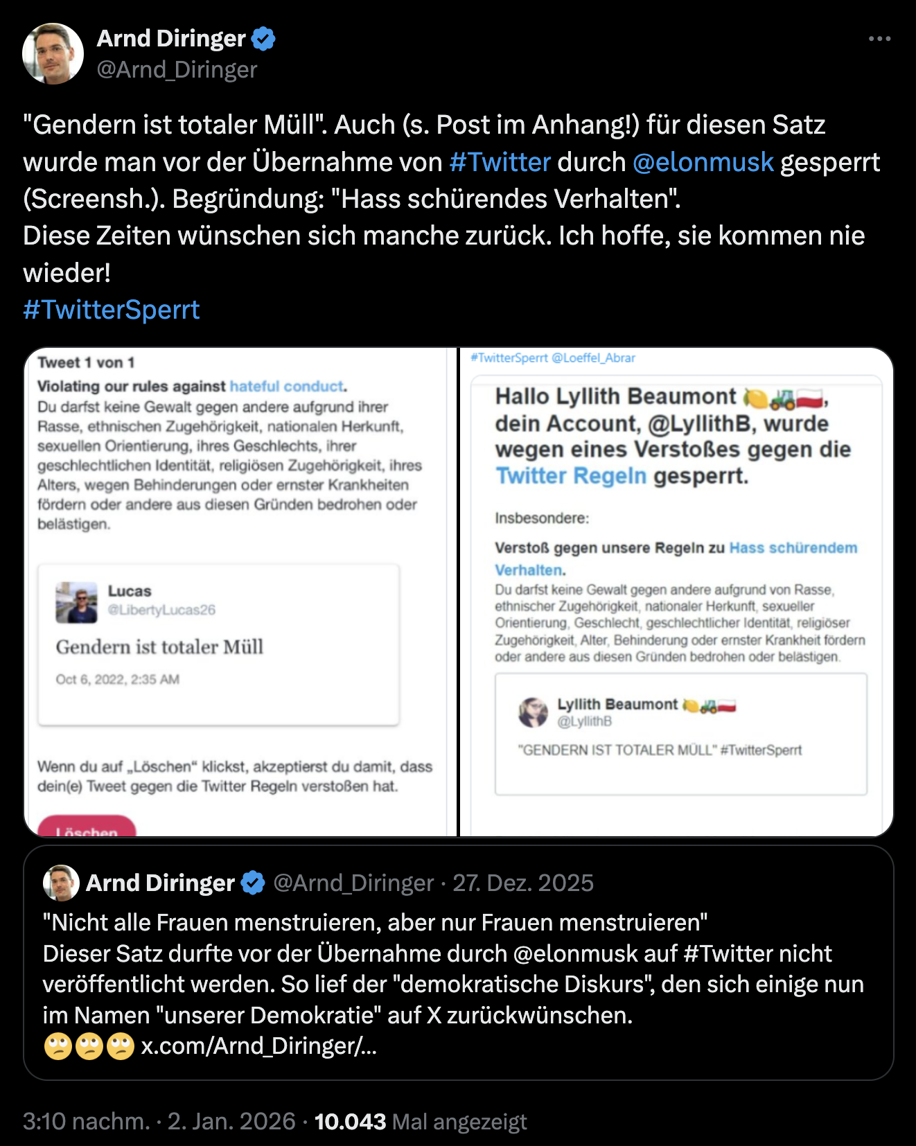09.01.2026Eine kleine Übung in Hass und Hetze: