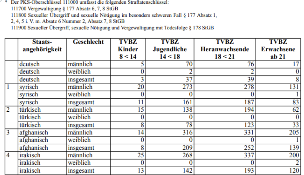 Aus den Zahlen geht allerdings auch hervor, was die Spiegel-Frau eigentlich meint: Es gibt endlich wieder einen Vorgang mit einem teilprominenten, zum Monster aufgepumpten weißdeutschen Mann namens Christian. Eine Vergewaltigung in einem Jugendzentrum (oder wie in Illerkirchberg geschehen) erzählt sich medial schnell, da diese Taten einem immergleichen Schema folgen. Außerdem lassen sich die unprominenten Opfer im Anschluss nicht verwursten, weshalb sie auch stets namenlos bleiben.